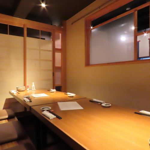 【1樓:帶下沉式被爐桌的包廂/帶桌子的包廂】 房間之間用拉門或窗簾隔開,適合小團體使用。這是一個充滿白木香氣的令人放鬆的空間。